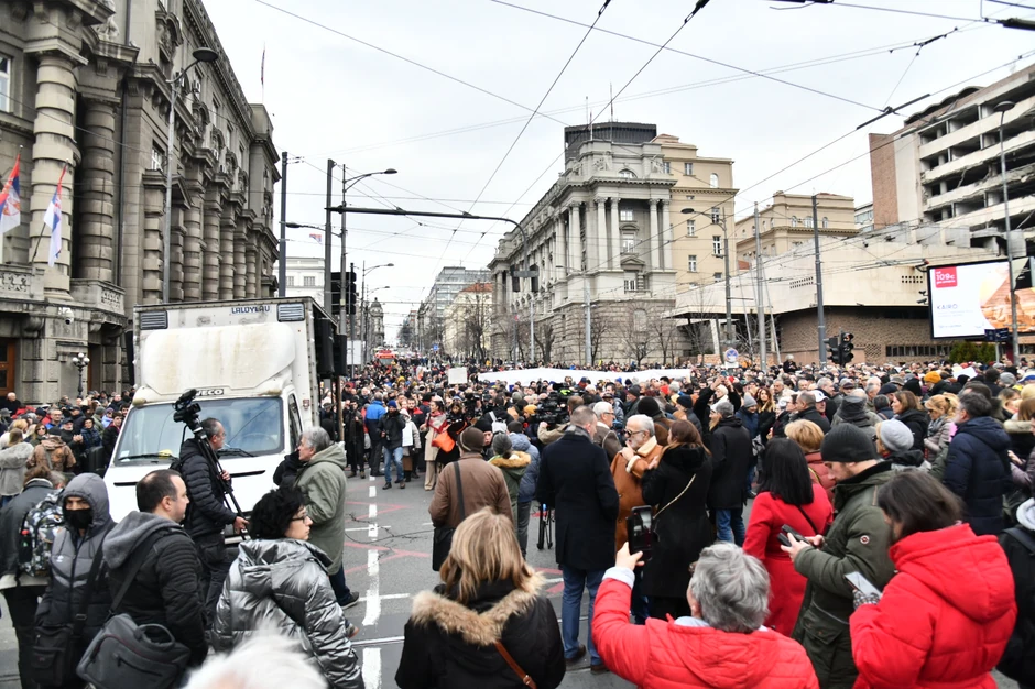 Portest je trajao oko jedan sat, a tokom tog vremena bila je blokirana raskrsnica ulica Kneza Miloša i Nemanjine.