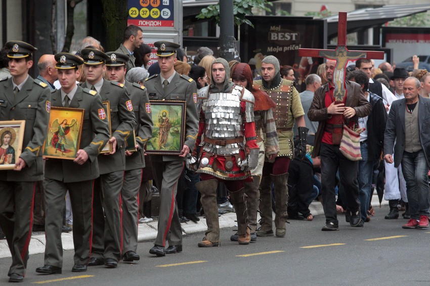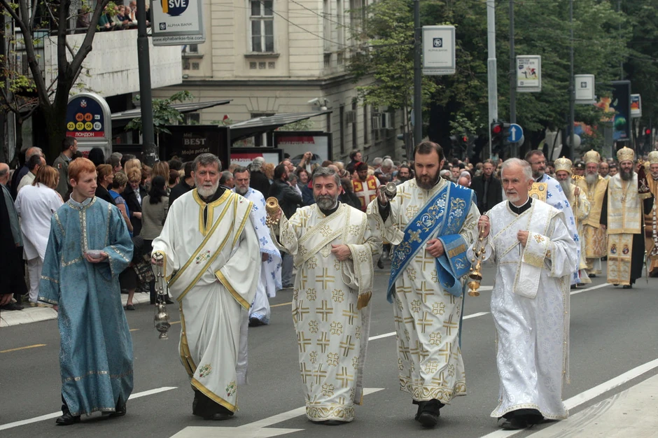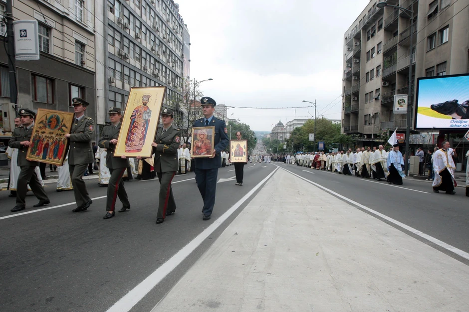 Na čelu litije bio je Patrijarh Irinej sa nekoliko vladika, a tu su se nalazili i predstavnici vojske i policije u svečanim uniformama, koji su nosili ikone.