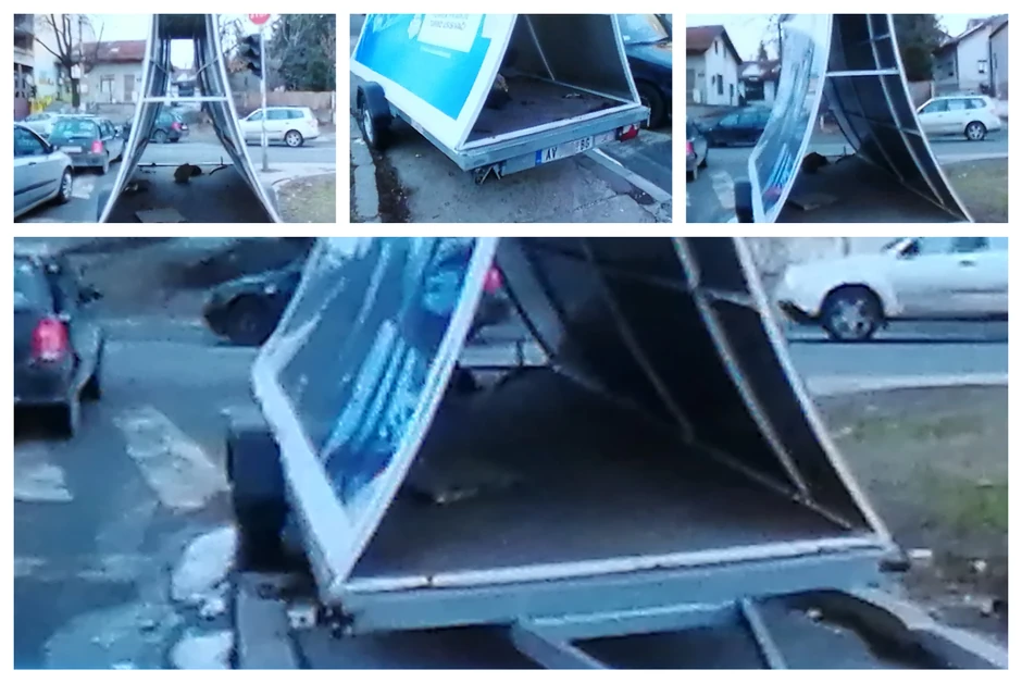 Vozači koji dolaze iz Prvomajske od ove reklame ne vide ni semafor, ali ni znak "stop". I ne samo to, nego ni pešaci ne mogu od prikolice potpuno bezbedno da pređu sa jedne na drugu stranu ulice, o korišćenju trotoara da i ne govorimo.