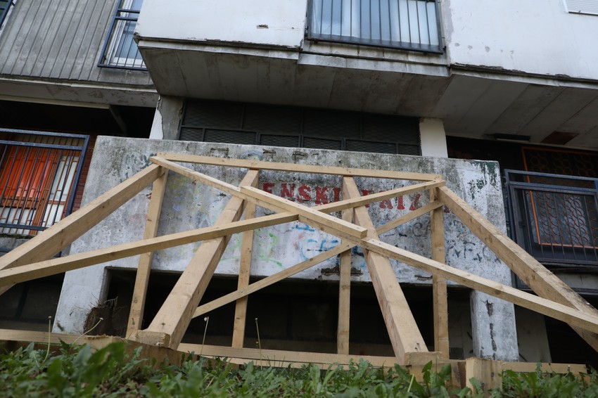 - Rekli su nam da su drvene grede koje drže ove stubove na obodima solitera privremeno rešenje. Međutim, grede i dalje stoje, a stubovi prete da se sruše svakog trenutka. Deca iz ovog, ali i okolnih solitera igraju se ovde, ljudi prolaze... Samo se molimo Bogu da se ne desi nešto najgore. Uopšte nismo sigurni u svoju bezbednost - govori stanar.