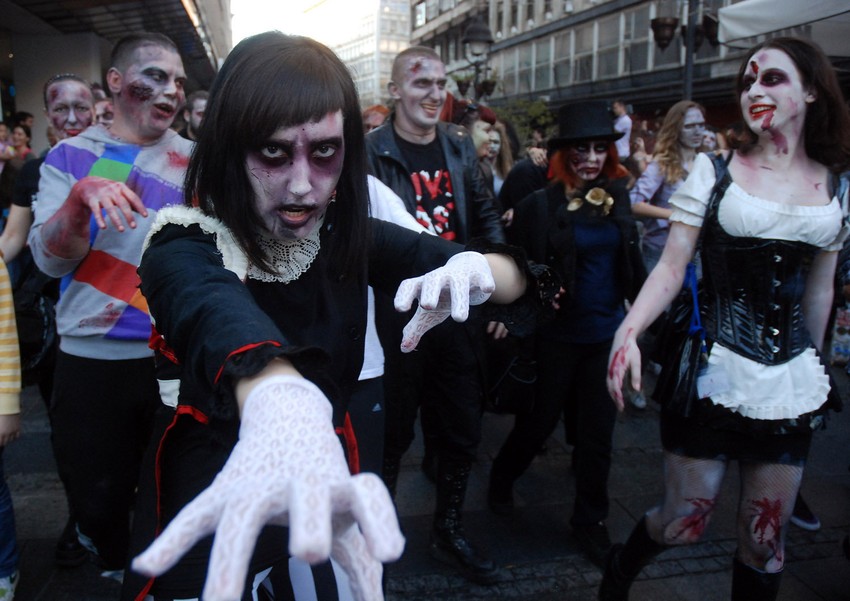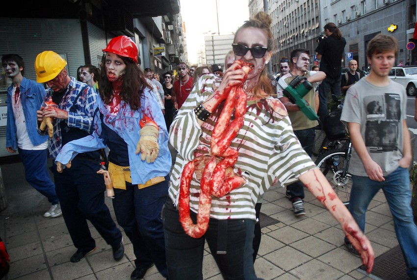 Večeras je u okviru Festivala srpskog filma fantastike (FSFF) održana Zombi šetnja u kojoj je grupa od oko 200 ljudi maskiranih u zombije krenula od Trga republike, preko Terazija i Trga Nikole Pašića do Doma Omladine.