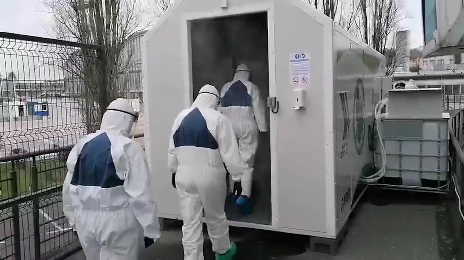 Ovako za RTS priča jedan od zaraženih korona virusom koji je smeštan u privremenu bolnicu na Sajmu u Beogradu. Ekipa RTS-a ušla je na Sajam i popričala sa pacijentima pozitivnim na COVID 19. Kako kažu, na uslove na Sajmu se ne žale, tople vode u kupatilima ima, internet radi, noću je tiho i mirno, a hrana je dobra.