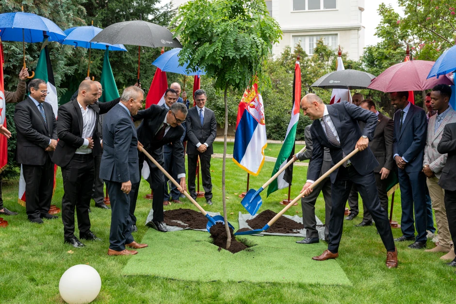 U godini kada Društvo za iznajmljivanje nekretnina „Dipos“ nizom manifestacija obeležava 60 godina poslovanja i 60 godina Diplomatske kolonije na Dedinju, u sedištu Društva danas je održana svečana ceremonija sadnje stabla prijateljstva sa 10 ambasadora arapskih zemalja u Republici Srbiji.