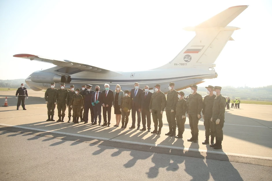 Ruski "Iljušin 76" sleteo je na banjalučki aerodrom, a to je prvi od tri aviona koji će danas u Banjaluku dopremiti medicinsku pomoć za Republiku Srpsku.