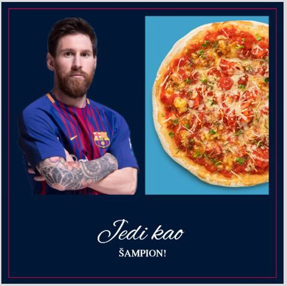 Razmišljamo nešto, klinci baš vole picu i uopšte ne prave pitanje sa kog je kioska, kako je i od čega napravljena. I skroz je OK da jedu picu, evo, čak i Mesi jede picu. Ali, samo da znate, Mesijeva pica je čarobna i ima super moći da daje snagu i vitamine.