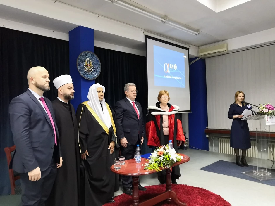 Generalni sekretar Muslimanske svetske lige El Isa se u prepunoj velikoj sali Alfa BK univerziteta zahvalio na izuzetnoj počasti koja mu je priređena.