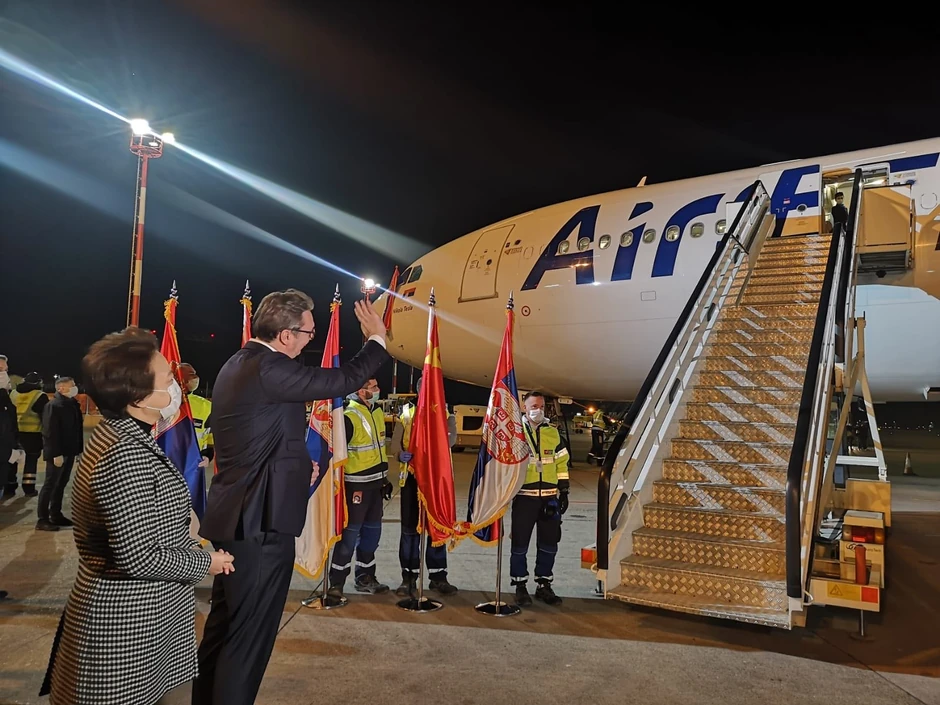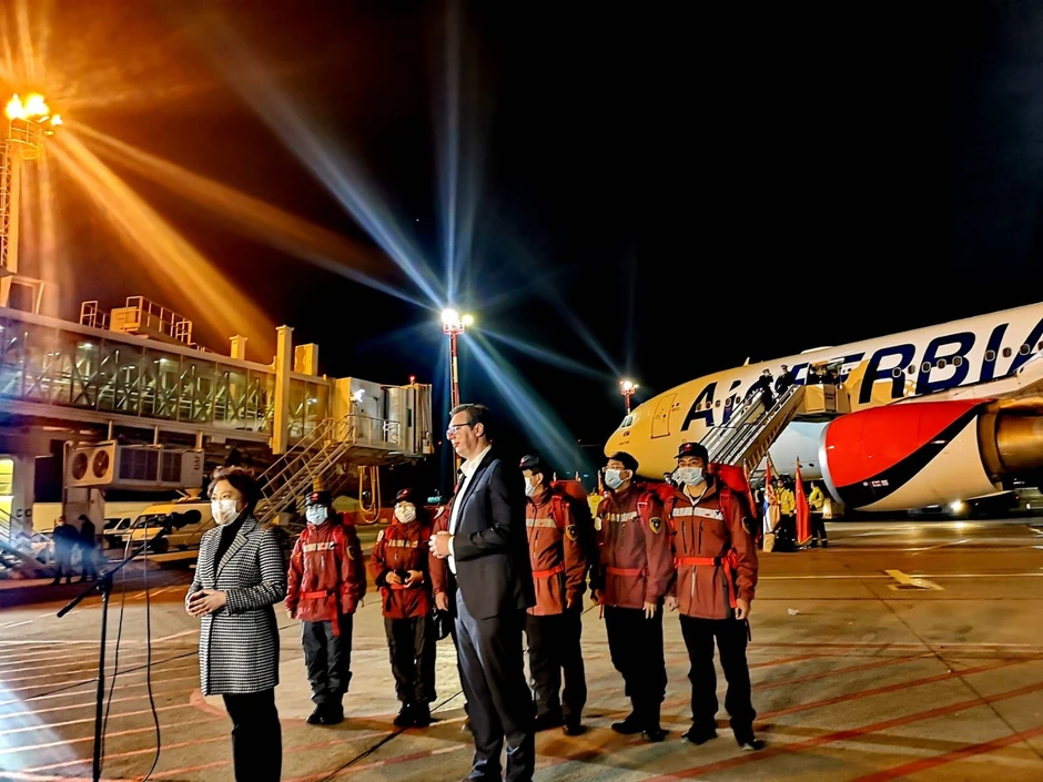 - Pokazali su solidarnost, spasili su na stotine hiljada života. Posebno hvala predsedniku Si Đinpingu. Dolazak kineskih stručnjaka je od ogromnog značaja za Srbiju. Oni su prvi pobedili virus. Mi ćemo slušati sve što oni kažu, to nije politika, već poštovanje onih koji su uspeli da pobede najvećeg protivnika današnjnice. Veliko hvala kineskom narodu, predsedniku Si Đinpingu. Sve što je u ovom avionu je besplatna pomoć Kine, hvala im na tome. Pokazali su kao prijatelji kad je teško. Ne bismo imali šansu bez pomoći Kine i predsednik Đinpinga - rekao je Vučić.
