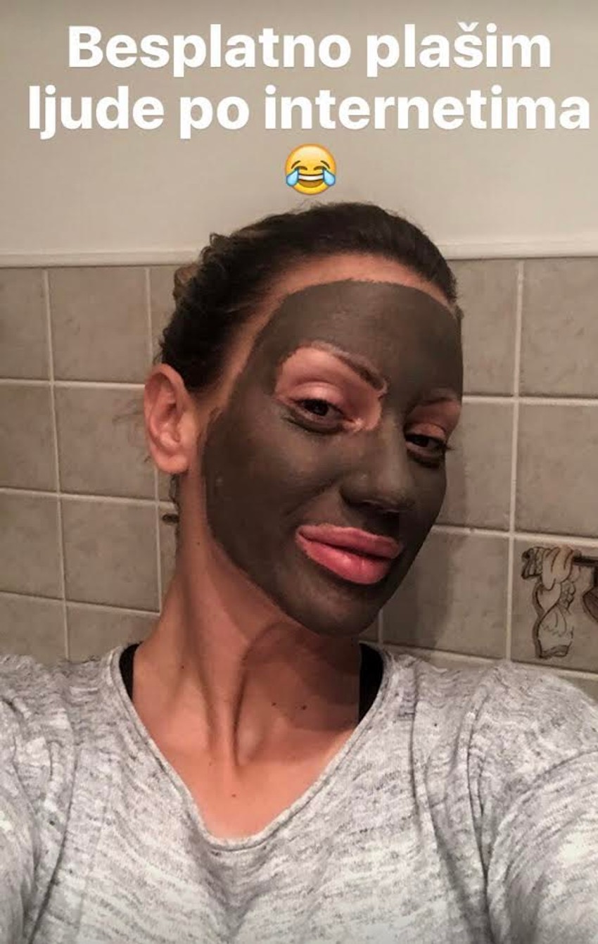 Ona se našalila sa pratiocima na Instagramu pa je podelila trenutak iz kupatila. Ana na licu ima tamnu masku i vide joj se samo oči i usne.