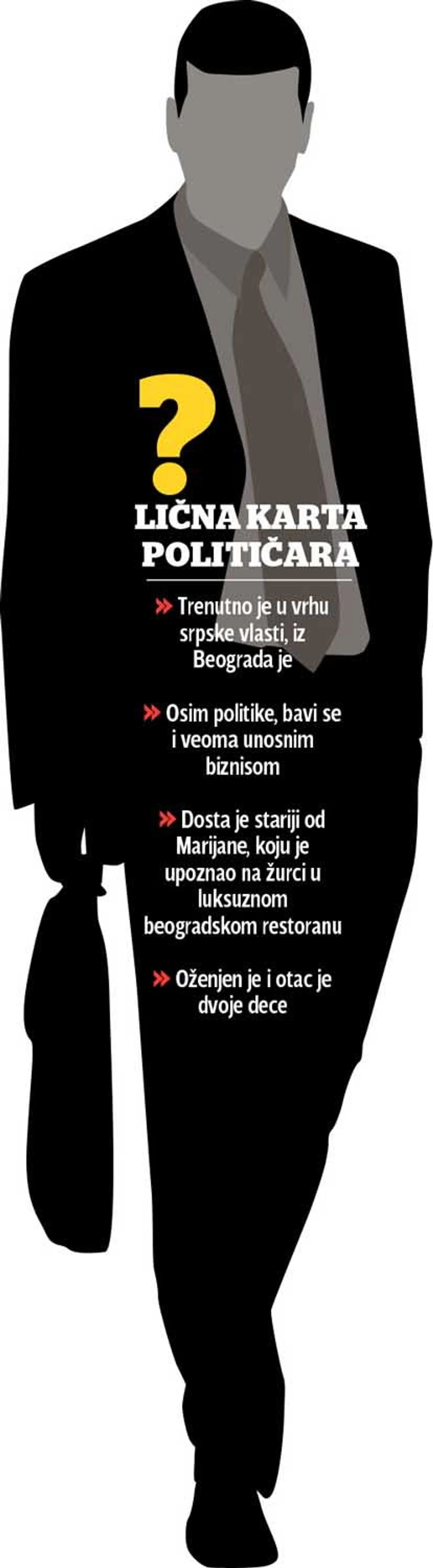 On otkriva da je političar mnogo stariji od Marijane i da se bavi i biznisom.