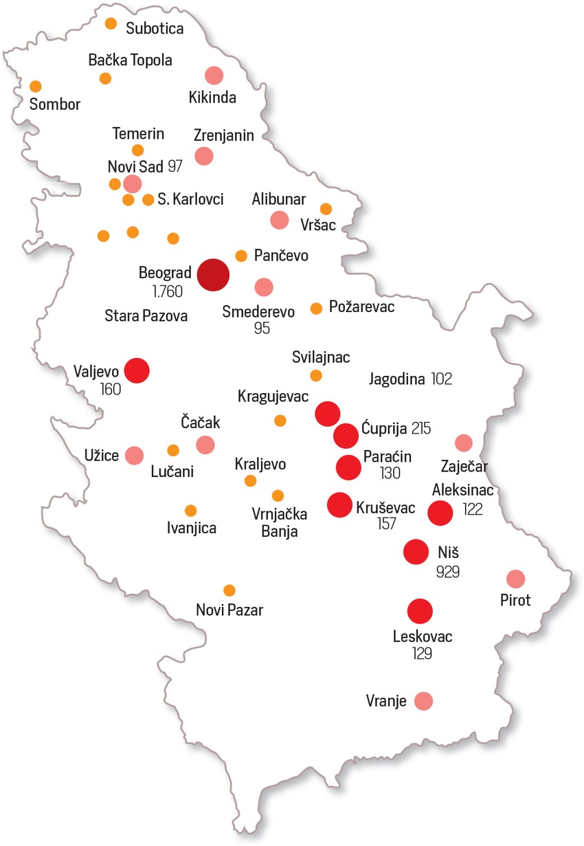 Epidemiološka situacija virusa korona stabilna je na severu Srbije i u Beogradu, dok su žarišta i dalje na jugu i u centralnom delu zemlje. Imajući u vidu broj stanovnika, neslavni rekorder po broju zaraženih je ubedljivo Ćuprija, ali i Aleksinac, Valjevo i Kruševac.