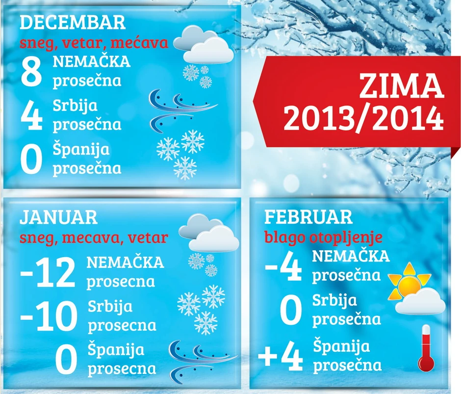 - Najviše zimske temperature na Balkanu biće u februaru, kada će temperatura biti maksimalno pet do deset stepeni u plusu - kaže Jung.