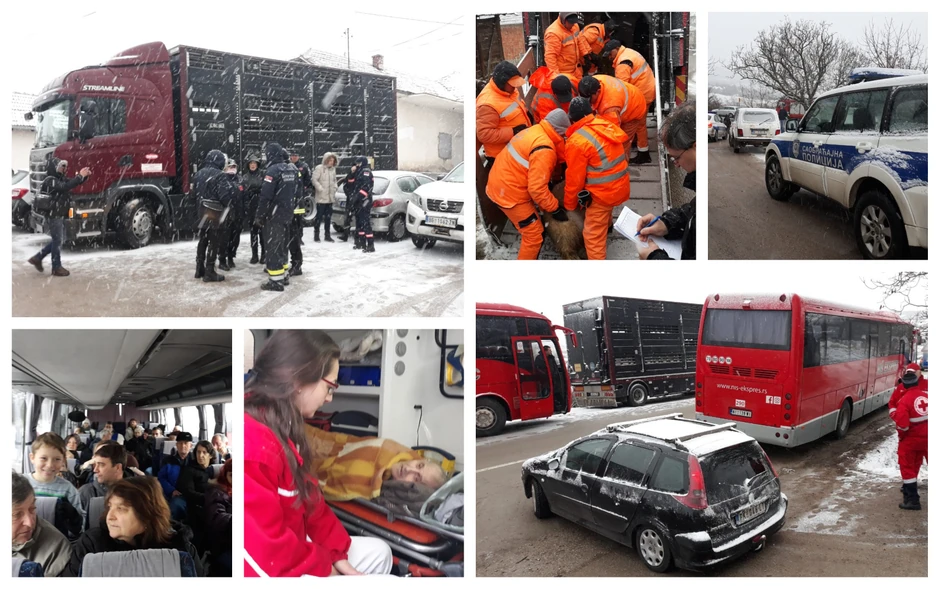 Sa ugroženog područja stanovništvo je prevoženo kombijima i automobilima do glavnog puta ka selu Jasenovik odakle ih evakuišu autobusi Niš-ekspresa.
