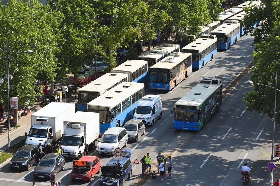 Zbog blokade nijee saobraća veliki broj gradskih autobusa i to na nekim od glavnih linija. Autobusi su stajali zarobljeni na Bulevaru Oslobođenja.