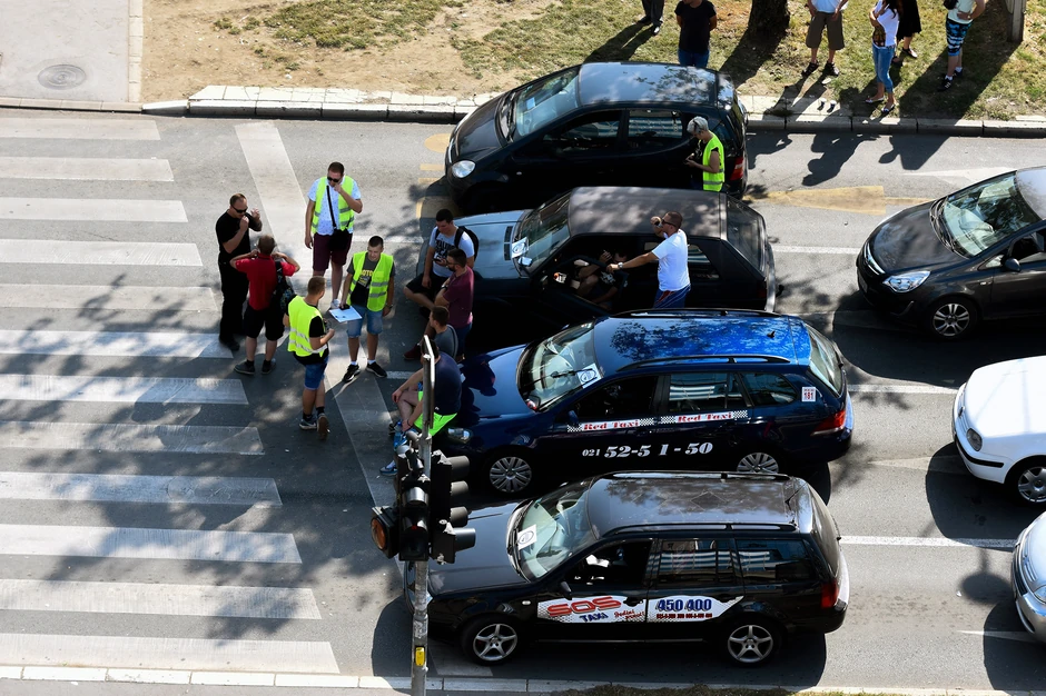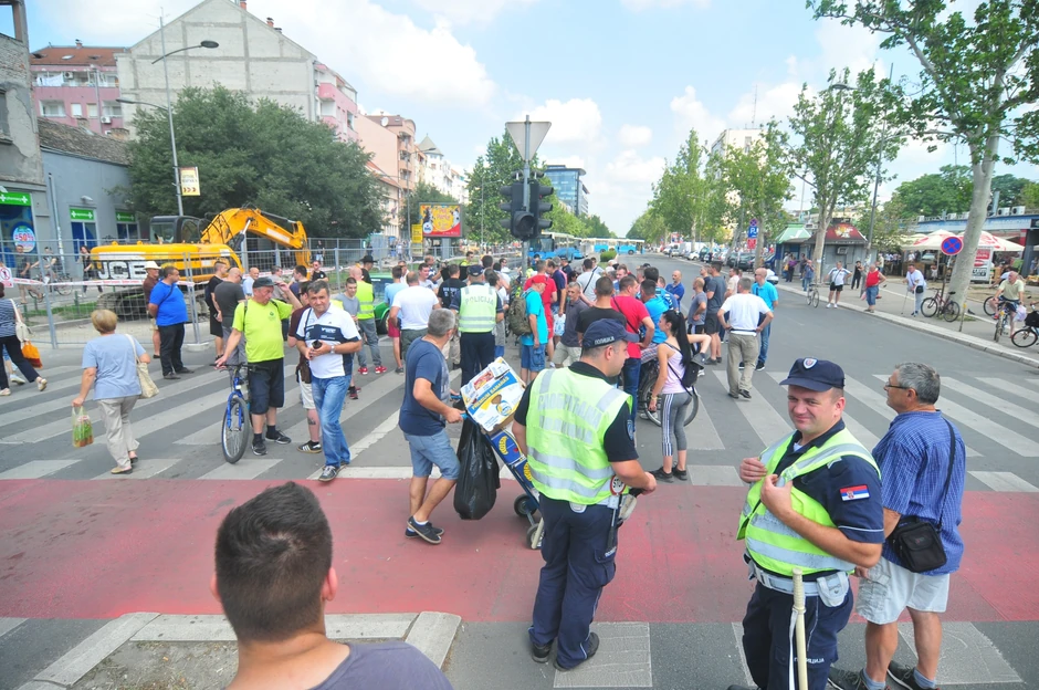 Jedna od najprometnijih gradskih raskrsnica blokirana je nešto posle sedam časova, a Novosađani su, kao i u petak na raskrsnici ponovo zaigrali fudbal.
