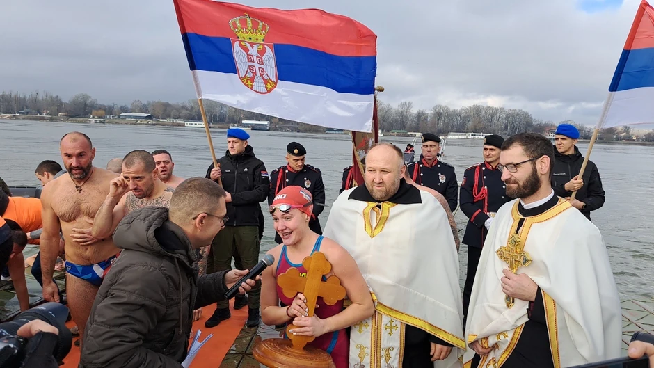 Nakon liturgije u Hramu rođenja Presvete Bogorodice u Sremskoj Kamenici sa sremske strane Novog Sada u reci Dunav održano je tradicionalno plivanje za časni Bogojavljenski krst.