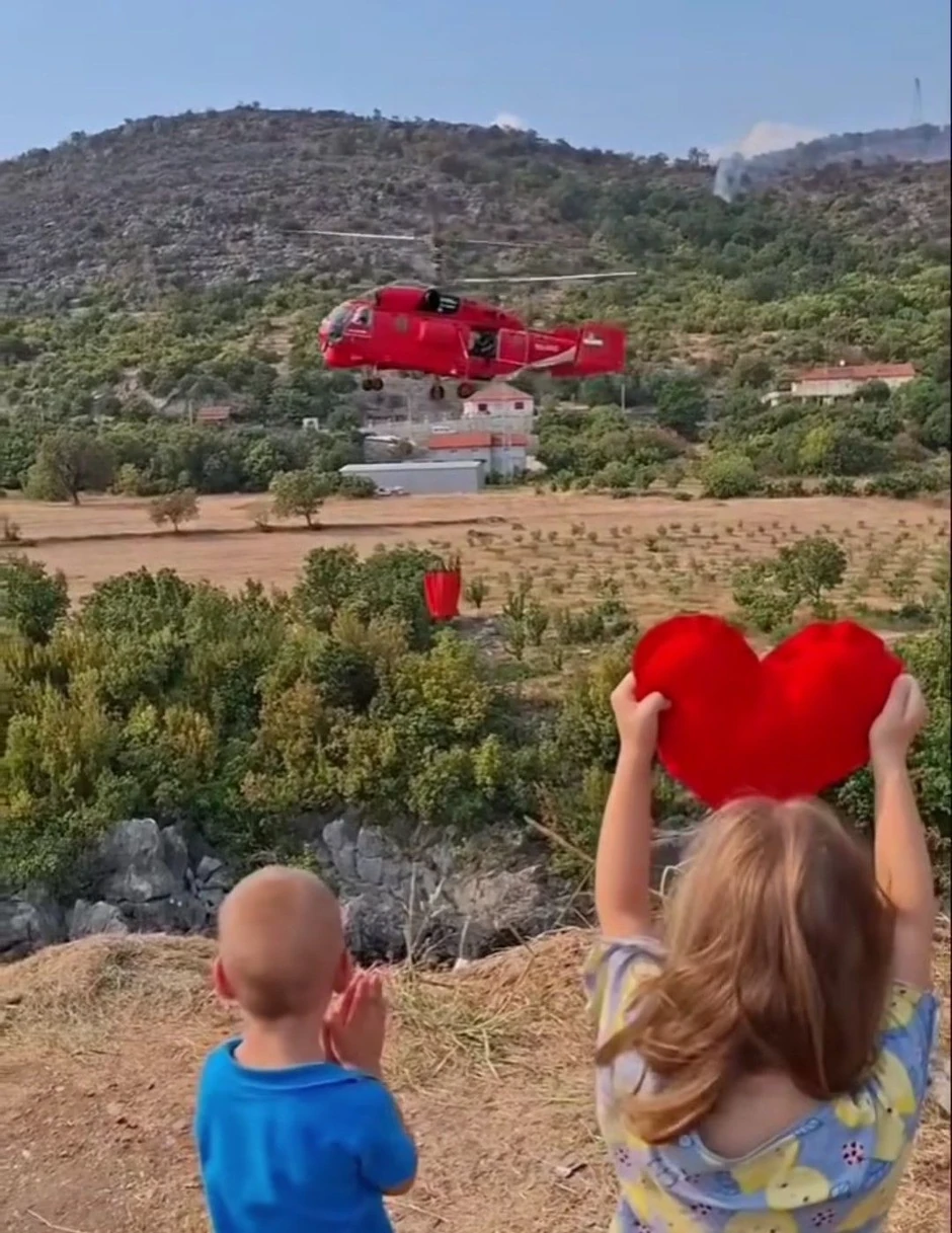 Na društvenim mrežama pojavio se snimak brata i sestre iz porodice Ivanović iz Kuča kako mašu srcem i pozdravljaju helikopter iz Srbije koji je prvi pritekao u pomoć Crnoj Gori u gašenju stravičnih požara.