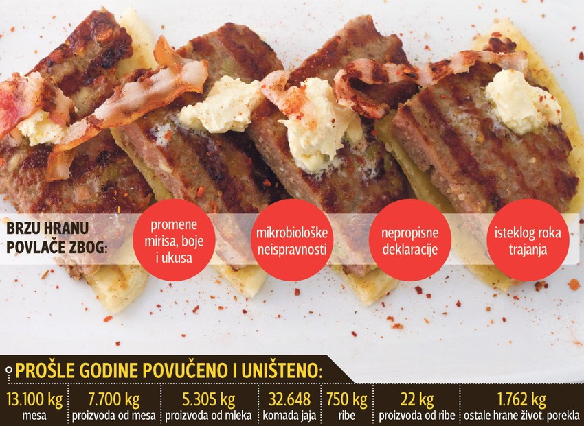U Veterinarskoj inspekciji kažu da u restoranima brze hrane najčešće zatiču loše higijenske uslove, nepropisno obučene radnike, meso koje stoji van frižidera i za koje nema dokaza o poreklu, hranu sa isteklim rokom trajanja.