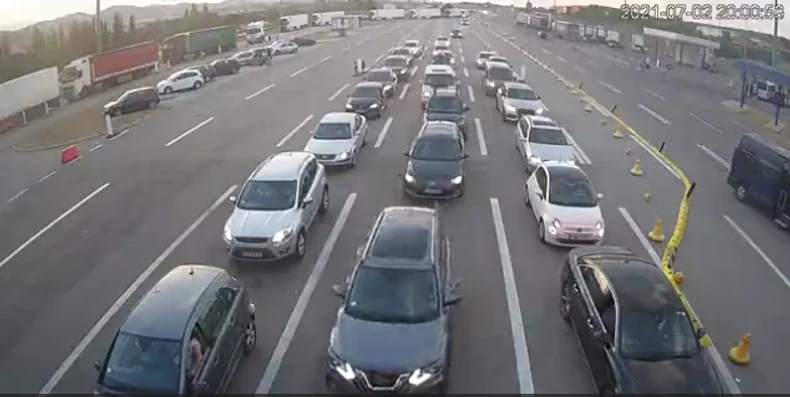 Granični prelaz Tabanovce - Preševo trenutno radi sa pet traka za putnike, dve za kamione i jednom za autobuse.