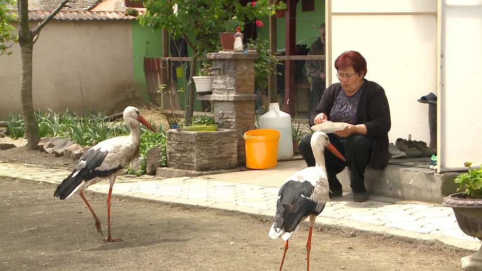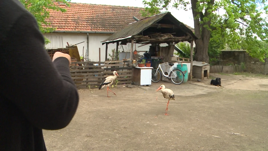 "Jednu je unuk doneo pre osam godina, bila je jako mala i povrđena. Uspela sam nekako da joj spasim polomljeno krilo, vezala ga tankim koncem i ono je zaraslo. Od tada roda nigde ne ide iz dvorišta i jako se vezala za nas, druga je na imanju četiri godine. Nadenuli smo im naša imena, odazivaju se i regauju na naš glas, ali su jako uznemireni ako dođu u kontakt sa drugim ljudima, uplaše se", kaže Milena.