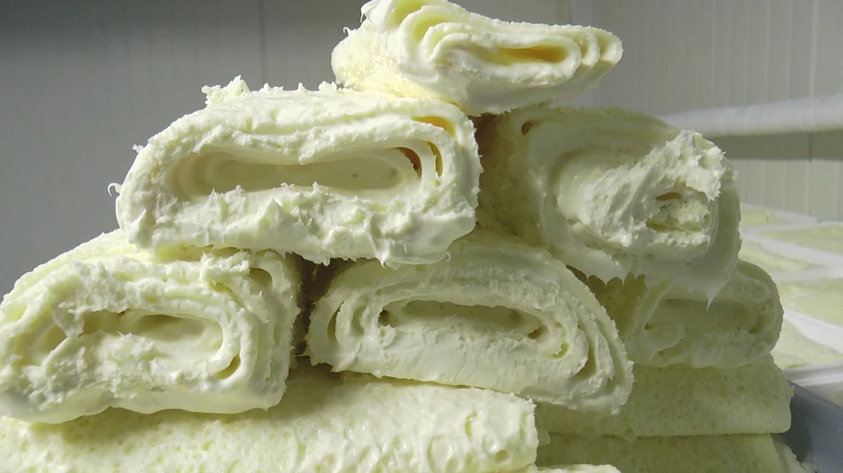 - Svi mahom koriste tradicionalno pakovanje kajmaka, ja sam odlučila da ovaj naš savijem u rolnu i to je bio pun pogodak. Rolovani kajmak je brend naše mlekare i tražen je kako kod nas, tako i u inostranstvu. Može da se filuje pršutom, šunkom, pečurkama, ali dovoljni su i samo vrući uštipci - rekla je Olivera Starčević.