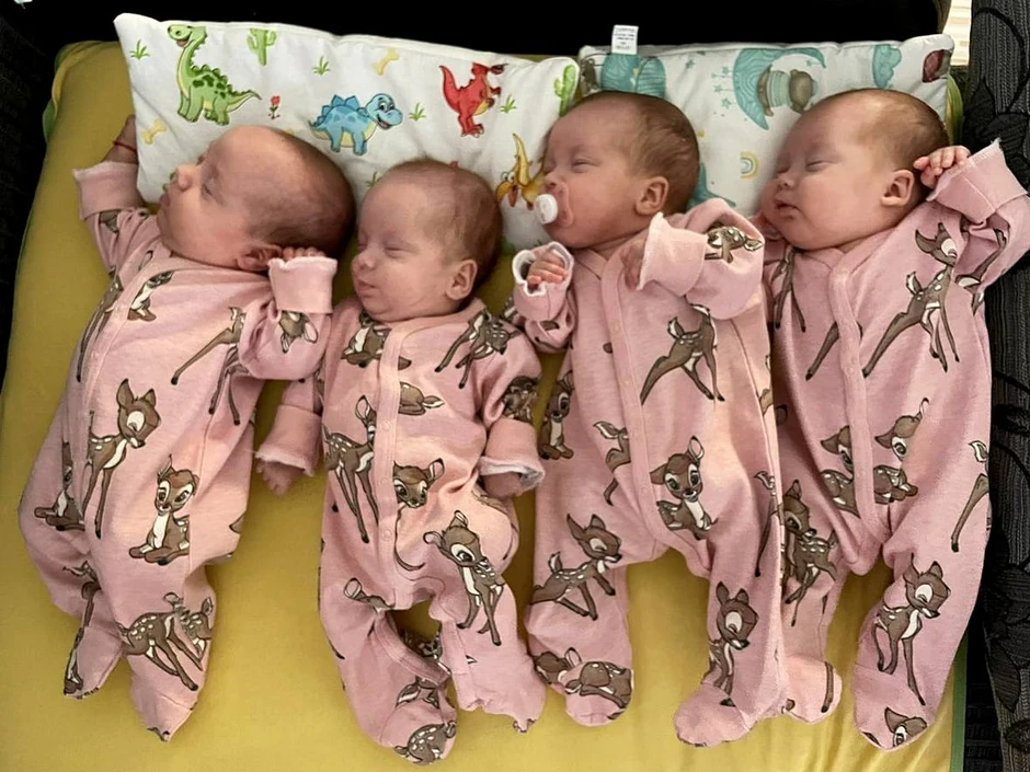 Nakon više od tri i po meseca od rođenja, prve srpske četvorke začete prirodnim putem, sestre Gaćeša, konačno su zajedno, sa roditeljima, Marijom i Đorđem, i trogodišnjom sestrom Iskrom!