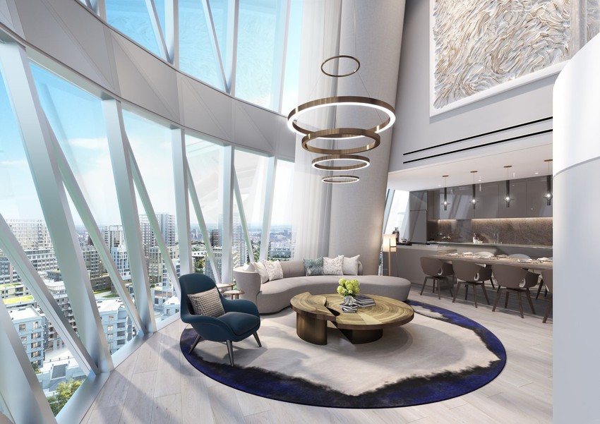 Upravo ovi visoki, dramatično iskošeni prozori u brendiranim St. Regis stanovima u tranzicionom delu Kule daju novu dimenziju pogledu ka reci ili gradu. Ovaj specifični “zid svetla” naglašava pogled koji se ne pruža samo pravo, već i u visinu i ka tlu.