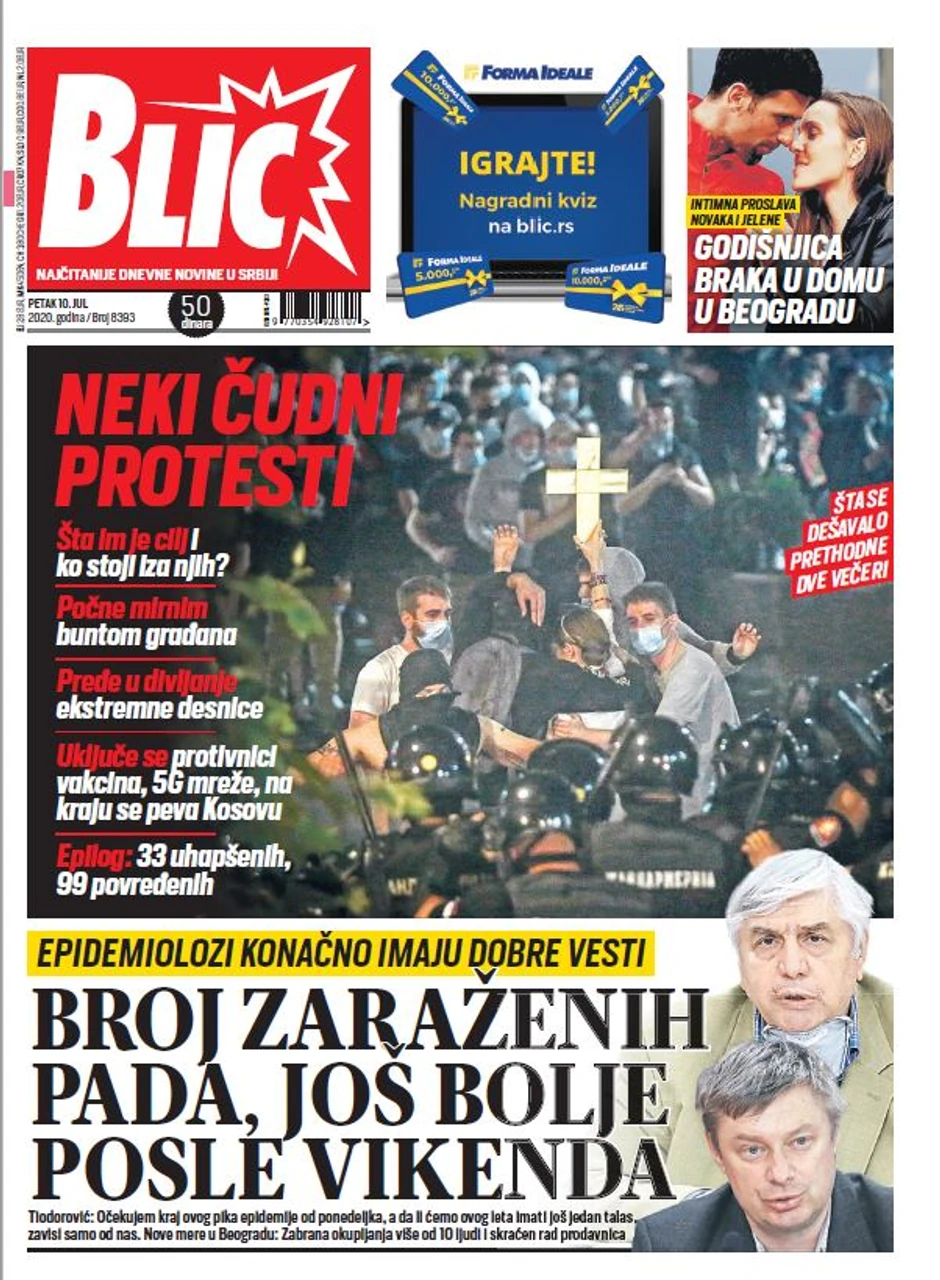 U novom broju "Blica" pročitajte šta se sve dešavalo proteklih večeri na protestima. Šta im je cilj i ko stoji iza njih? Epilog je 33 uhapđenih i 99 povređenih.