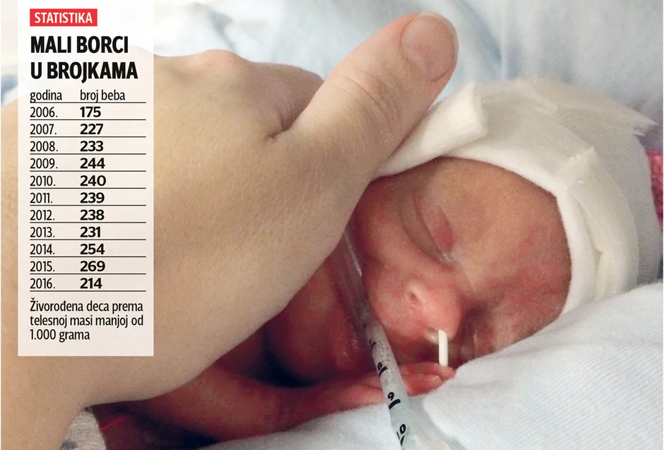 Ova mala junakinja je možda retkost među prevremeno rođenom decom, međutim, prema podacima Republičkog zavoda za statistiku, tokom 2016. godine u Srbiji je rođeno čak 214 beba koje su bile manje telesne mase od 1.000 grama. Taj broj je pre 12 godina iznosio 175. Najviše živorođenih beba pre vremena, koje su bile lakše od 1.000 grama, u poslednjoj deceniji bilo je 2015. godine, kada je na svet došlo 269 takvih mališana.