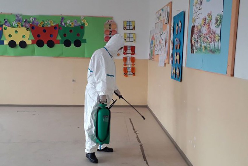 * Dezinfekcija koju može da obavi školsko osoblje se odnosi samo na dezinfekciju zajedničkih predmeta koji se često dodiruju (školske klupe, stolovi u trpezariji, sportska oprema, kvake, ručke na prozorima, školski pribor – šestar, lenjir) i to isključivo sredstvima na bazi 70 postotnog alkohola i nakon mehaničkog čišćenja vidljivo zaprljanih površina.