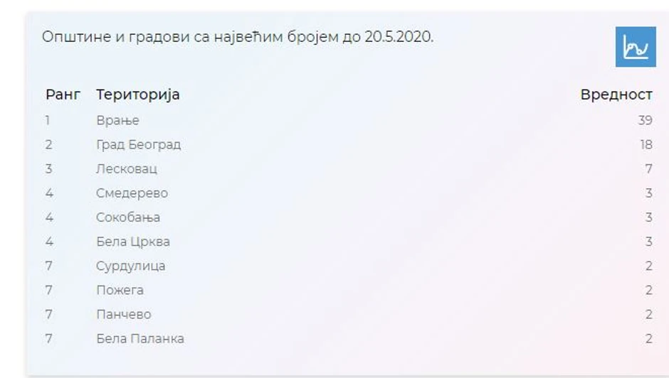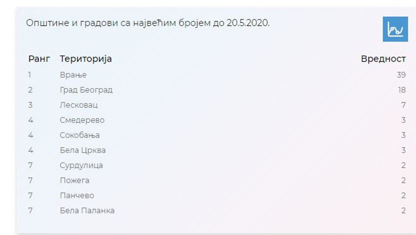 Prema podacima Instituta za javno zdravlje Srbije "Dr Milan Jovanović Batut", samo u jednom danu u Vranju je registrovano 39 obolelih od korona virusa.