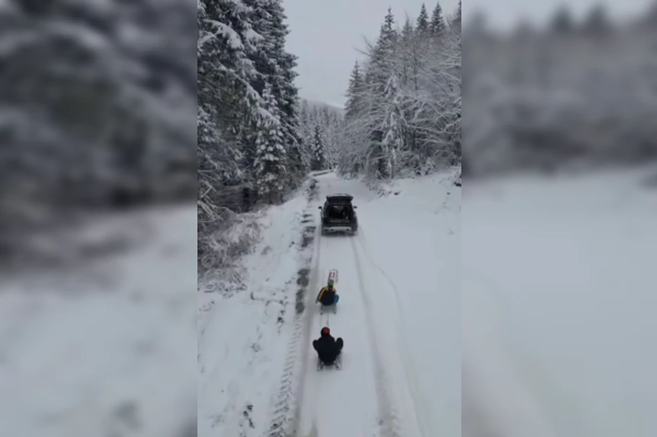 Kako se vidi na snimku podeljenom na Instagramu, vozač automobila za koji su prikačene sanke, vuče dvoje dece po snežnom putu, a koliko je scena naizgled zimske idile zabrinula korisnike najbolje se vidi iz komentara.