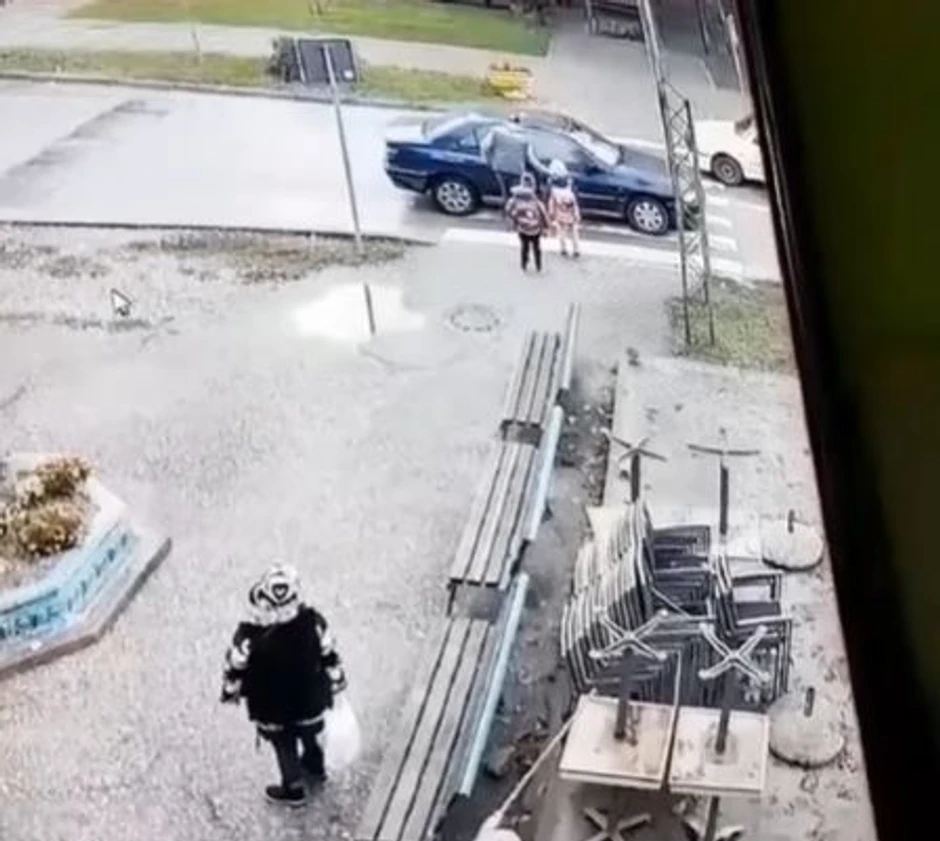Automobil je naime naišao u velikoj brzini, vozaču nije ni palo na pamet da prikoči iako je video decu i odraslog čoveka koji su već krenuli da prelaze ulicu i to na pečakom prelazu ispred škole!