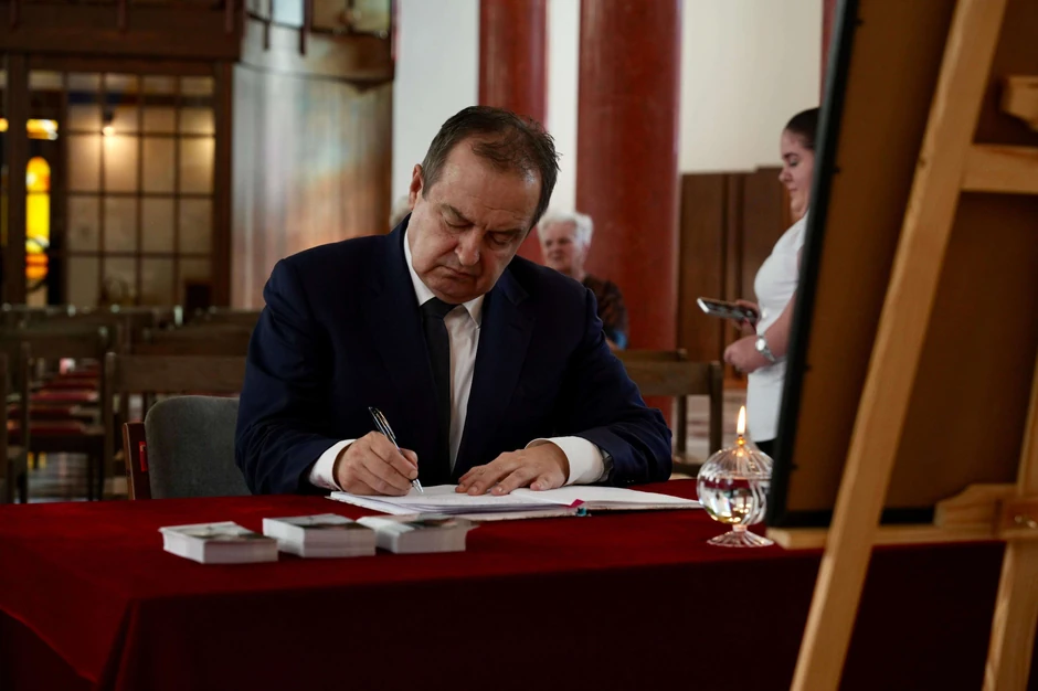 Potpredsednik Vlade i ministar unutrašnjih poslova Ivica Dačić upisao se danas u Katedralnoj crkvi Uznesenja Blažene Djevice Marije u Beogradu u knjigu žalosti otvorenu povodom smrti Pape Franciska.