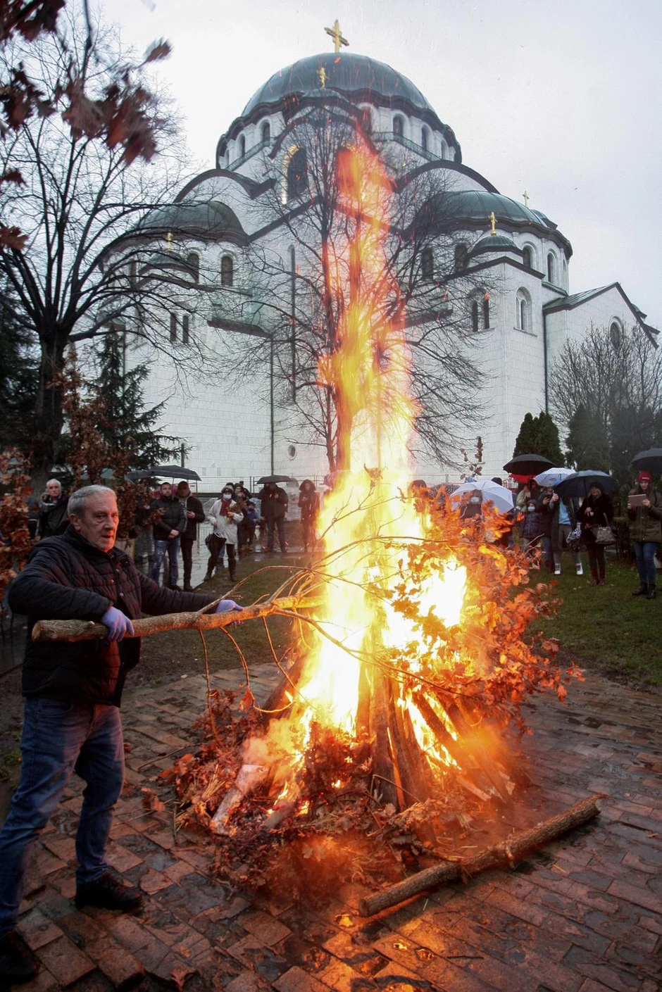 Tradicionalno paljenje badnjaka na Badnji dan organizovano je danas oko 16 časova ispred Hrama Svetog Save u beogradskoj opštini Vračar u prisustvu sveštenstva Srpske pravoslavne crkve (SPC) i manjeg broja vernika. Slika ispred Hrama je drugačija nego ranijih godina, kada je gotovo čitav plato bio ispunjen vernicima, ove godine situacija u vezi sa virusom korona broj vernika je potpuno smanjila.