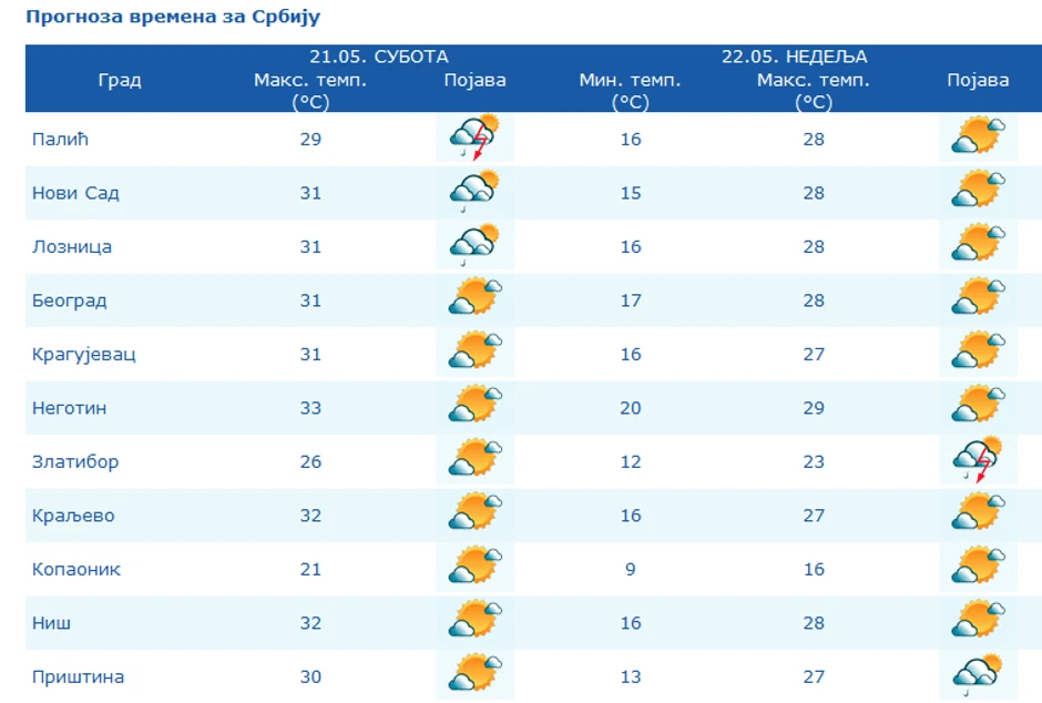 Vikend koji je pred nama donosi nam letnje temperature, ali i prolaznu nestabilnost. Prvi dan vikenda biće najtopliji dan ove nedelje. Temperatura je pred zoru bila malo iznad 10 stepeni, a već oko 8 ujutru u većem delu zemlje prelazila je 20. podeljak.