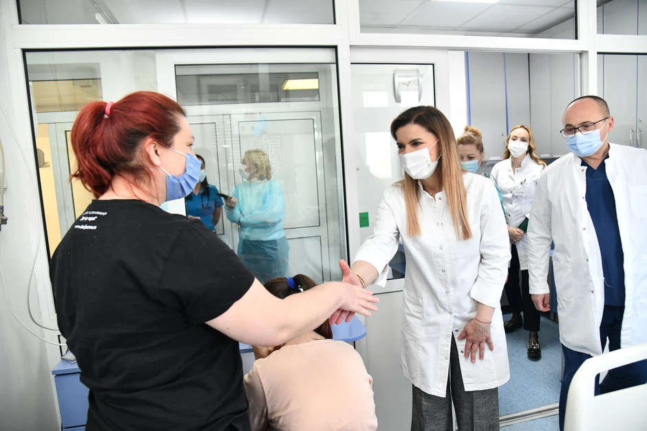 Samo deset dana nakon što su u Univerzitetskoj dečjoj klinici u Tiršovoj uspešno izvršene dve transplantacije bubrega od živih donora, operisanu devojčicu je posetila prof. dr Sanja Radojević Škodrić, direktorka Republičkog fonda za zdravstveno osiguranje. Zajedno sa direktorom dr Sinišom Dučićem, lekarima i sestrama koji brinu o operisanim pacijentima podelila je zadovoljstvo što oba transplantirana bubrega za sada dobro funkcionišu kao i što su se živi donori, u oba slučaja roditelji dece, uspešno oporavili i sada su kod svojih kuća.