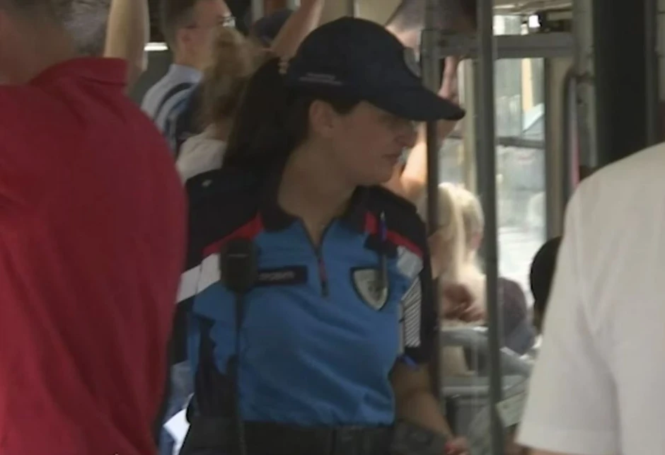 Uobičajena slika u javnom prevozu u Beogradu - građani i kontrolori na istoj stanici ulaze u vozilo. Putnici kucaju poruku na telefonu kako bi platili kartu.