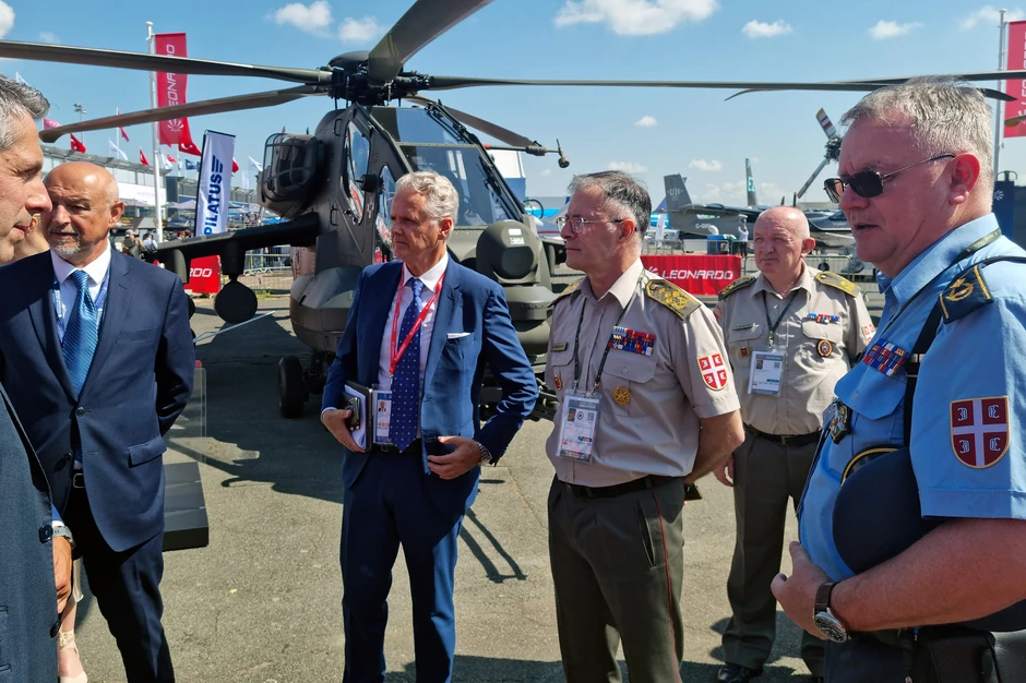 Delegacija Vojske Srbije razmatra dostignuća u razvoju vazduhoplova i odbrambene industrije.