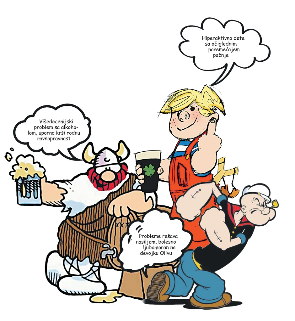 Čini se da su generacije dece naivno verovale da su Denis, Popaj ili Hogar, kao i ostali junaci njihovog odrastanja, normalni. Da strip i crtani film nisu nauka, već običan život. I šta im fali! Ili ipak...
