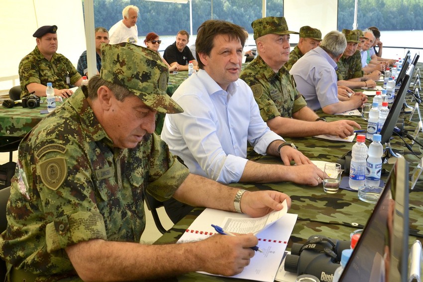 Sa komandnog broda "Kozara" gde je bio i Bratislav Gašić ministar odbrane, prvo je posmatrana vežba pešadijskih i rečnih snaga u napadu sa leve na desnu obalu Tise i potiskivanja neprijatelja prema Begeju.