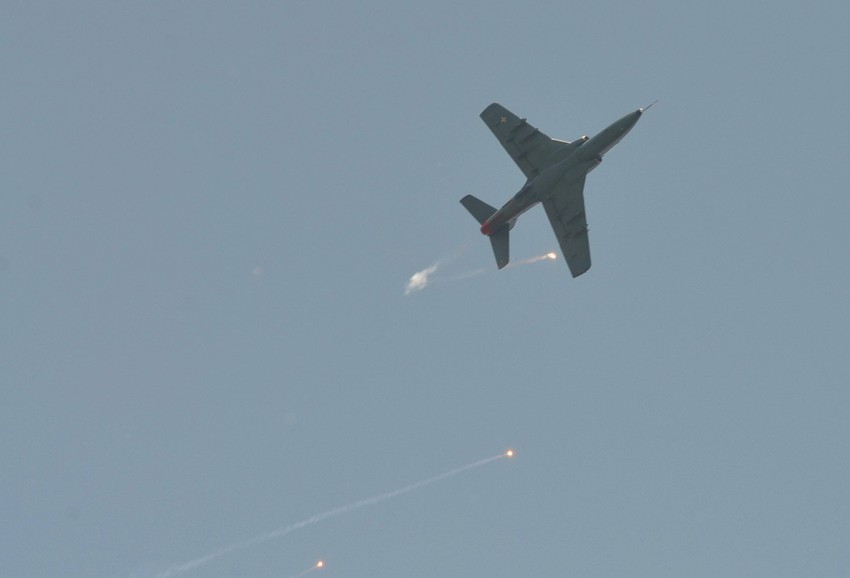 Titel - Ispaljivanjem signalne rakete i preletanjem četiri lovca G4 počeo je rečni desant združenih snaga Rečne flotile sa Prvom, Specijalnom i 204. vazduhoplovnom brigadom.