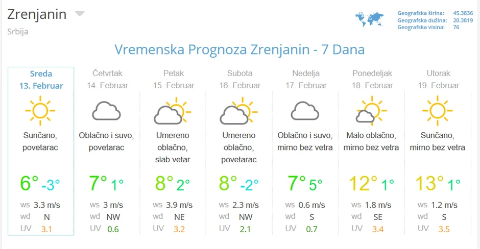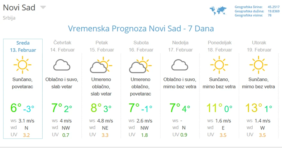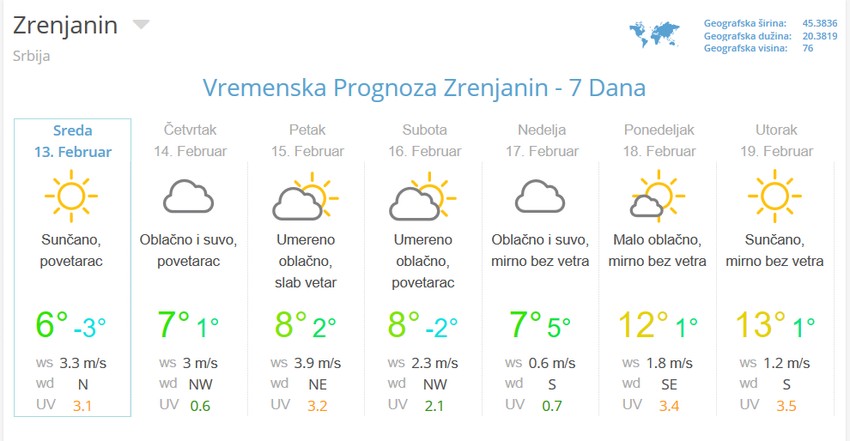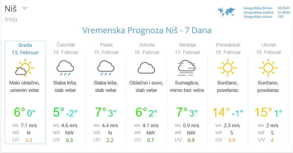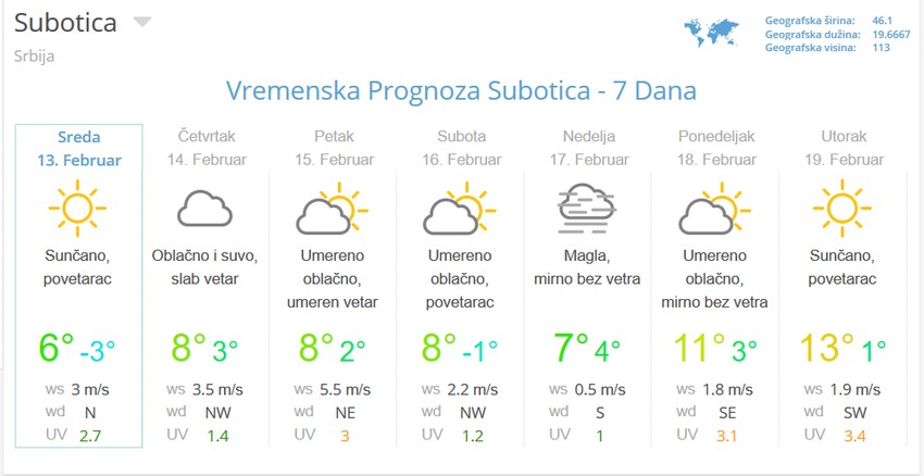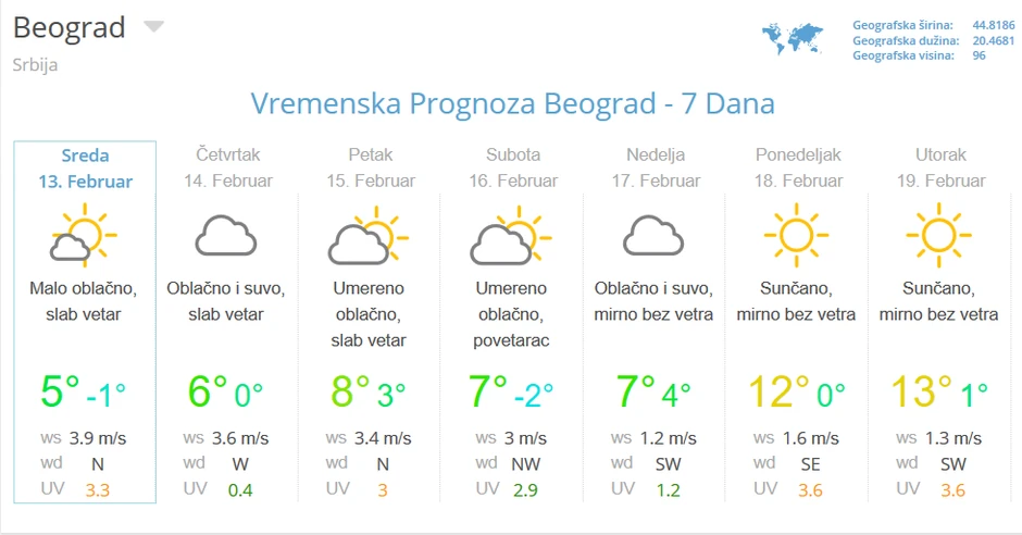 Za početak naredne nedelje meteorolog Đurić prognozirao je sunčano i još toplije vreme, sa maksimalnim dnevnim temperaturama i do 15 stepeni.