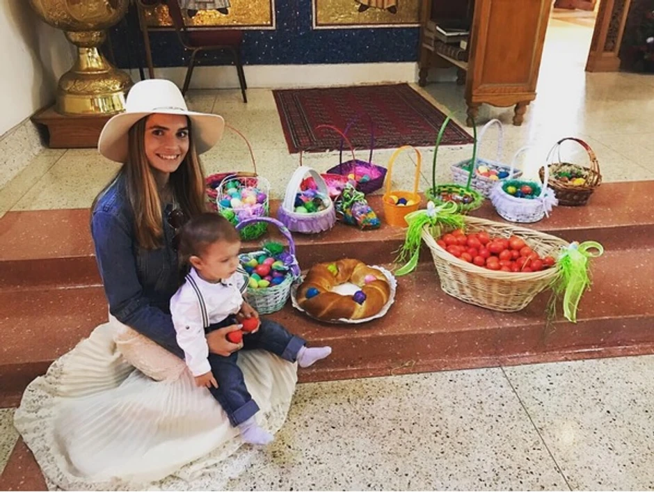 S obzirom na to da već godinama živi u americi, glumica je putem svom instagram profila svim vernicima poželela srećan praznik, a uz status je postavila i fotografiju na kojoj pozira sa Marko Leom, dok je njegov fokus bio isključivo na šarenim jajima.