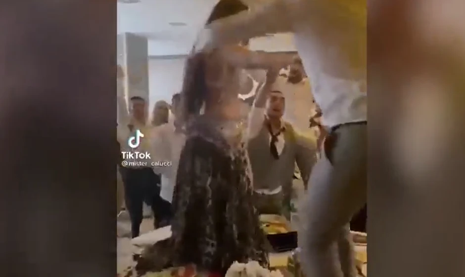 Verovatno ponet dobrom atmosferom, jedan mladić je odlučio da se pridruži devojci koja je igrala i popeo se na sto. U tom momentu, sto je prevagnuo na jednu stranu i plesačica je pala sa stola, zajedno sa svim što je na njemu stajalo.