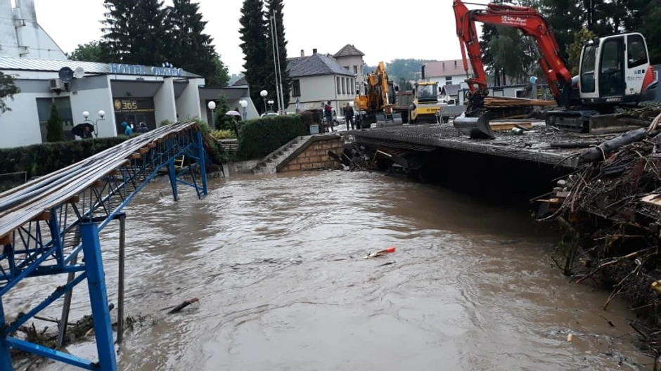 Odmah su angažovana tri bagera i jedna kombinirka koji su se nalazili na gradilištu i kojima je pokušano da se korito Skrapeža ispod mosta pročisti.