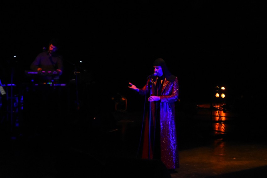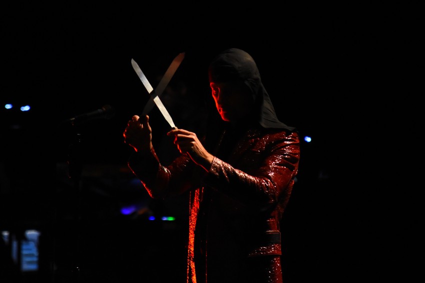 Koncert u najstarijem srpskom teatru počeo je kako je i očekivano, u mračnoj atmsoferi, ali novom pesmom "Ein Verkündiger", a zatim je usledila pesma "Das glück", takođe sa novog albuma. Dešavanja na sceni sve vreme su pratile pokretne slike koje su smenjivale iza bine ostavljajući tako potpun utisak na publiku.