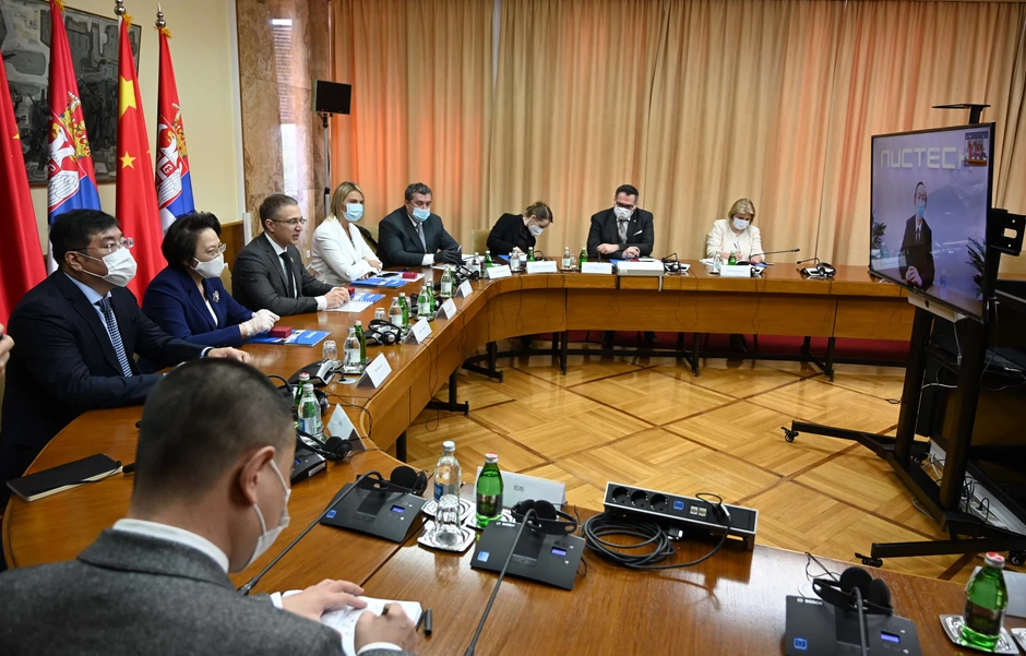 Ministar je putem video-konferencijske veze razgovarao i sa generalnimdirektorom "NUKTEK"-a Cićjan Čenom, u prisustvu ambasadorke Narodne Republike Kine u Beogradu Čen Bo, kojem se zahvalio na donaciji i uputio mu poziv da poseti Srbiju.