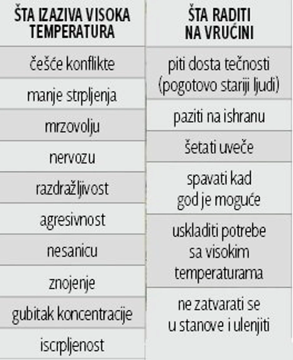 Najtoplije godišnje doba kod mnogih izaziva burne emocije i nervozu, što se objašnjava time da vrućina podstiče agresiju, postajemo pospaniji, umorniji i teže se koncentrišemo.