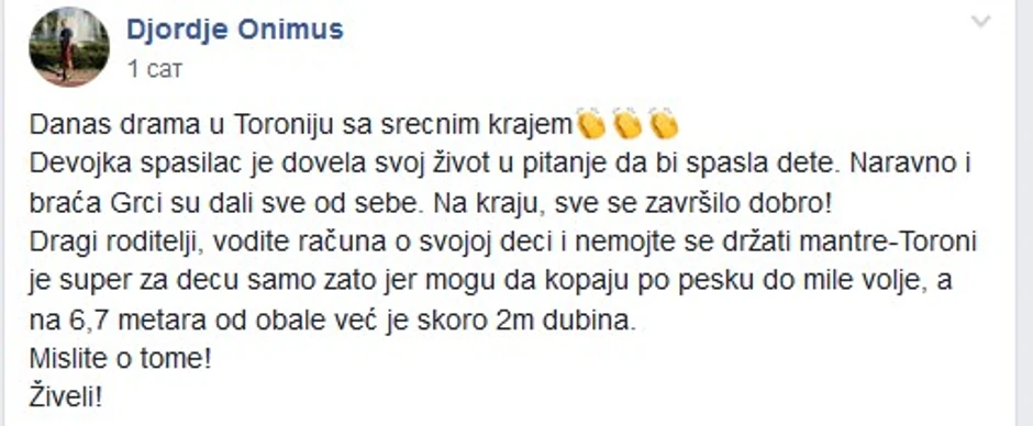 - Pored kućice za spasioca bio je čamac i konačno su se neki Grci sa plaže pribrali i uspeli nekako čamcem da dođu prvo do devojke, a onda i do dečaka - objašnjava Đorđe O. i dodaje da je cela akcija spasavanja trajala najmanje 20 minuta.