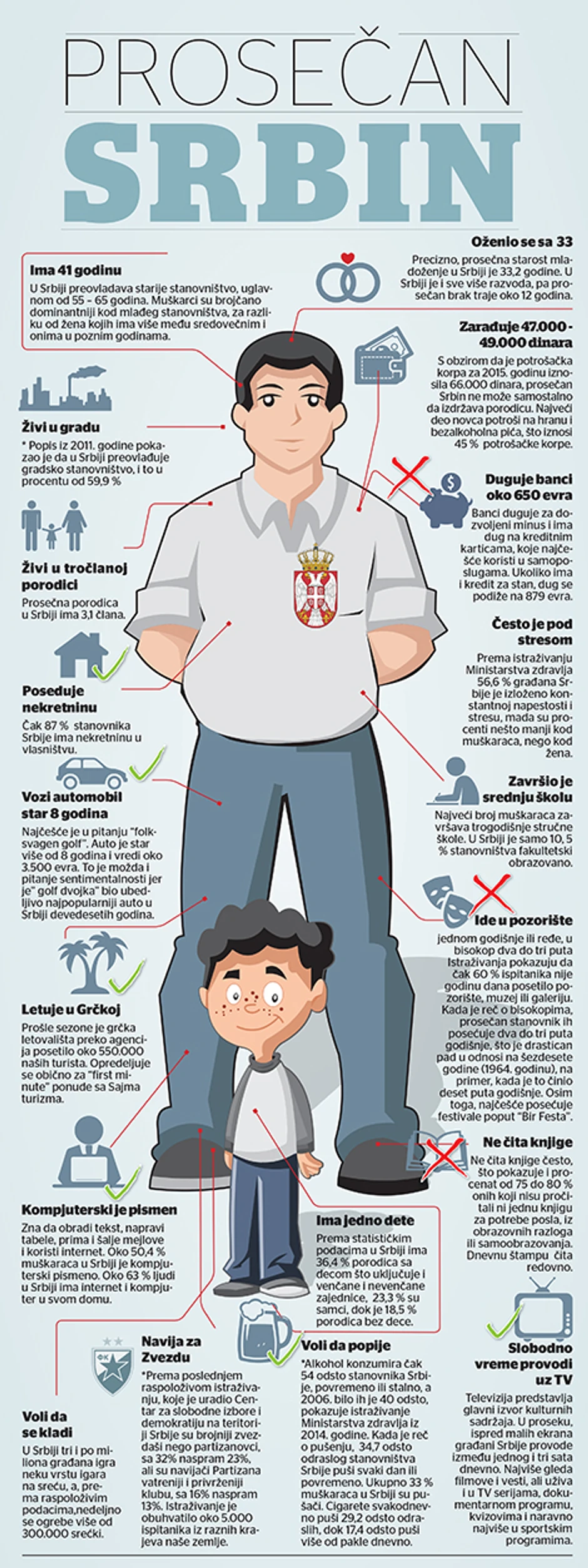 Prosečan Srbin navija za Zvezdu, slobodno vreme najčešće provodi uz televizor, voli da popije, puši, ide u kladionice..